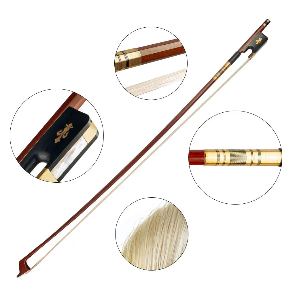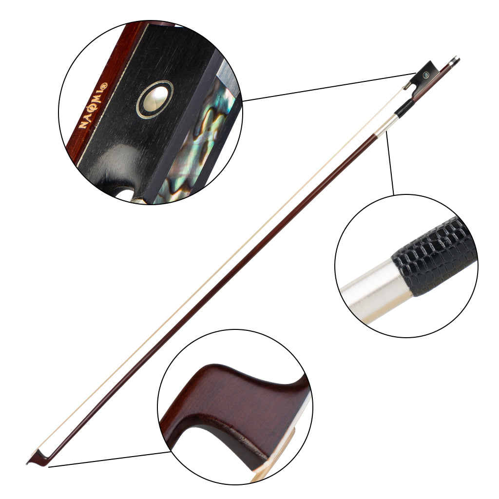 NAOMI Double Bass Bow For Upright Bass Sheep Leather Wrap Pernambuco Bow Ebony Frog