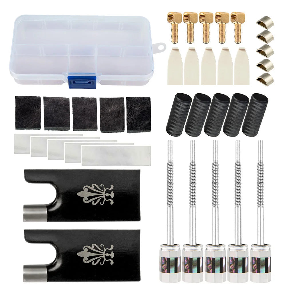 Assorted Violin Bow Tips Violin Frog Eyelet Ferrules Screws Leather Winding With Case Kit Replacement For Bow Luthiers Making