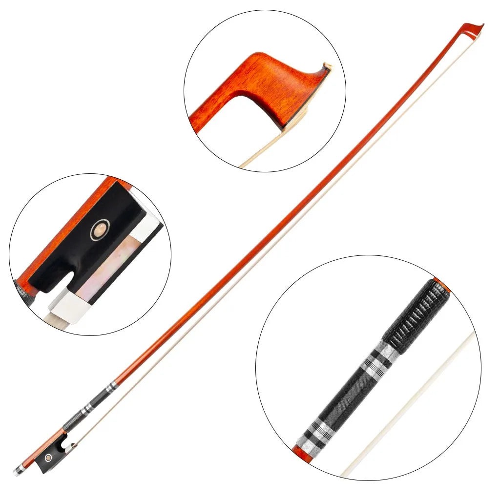 NAOMI Double Bass Bow For Upright Bass Sheep Leather Wrap Pernambuco Bow Ebony Frog